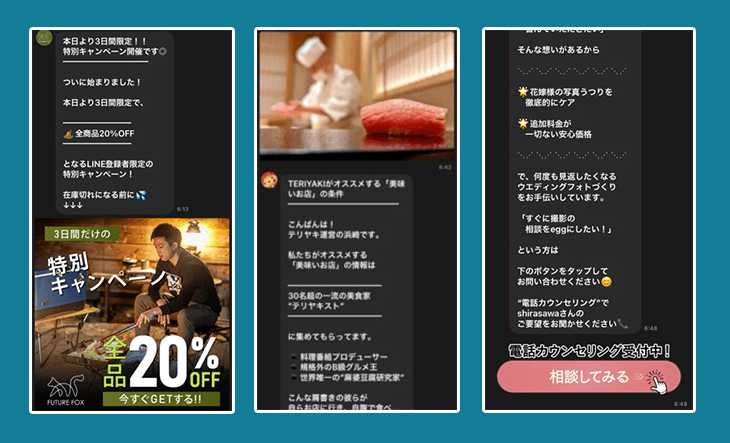 LINEにおいてはいつも真剣にお客様が内容を読んでくれるとは限りません。そのため「頭を使わずともスッと内容が入ってくる」ことが求められます。