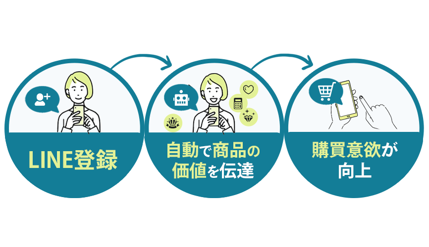 | LINE登録したお客様に商品の魅力を自動で伝達して「ほしい」を引き出す |