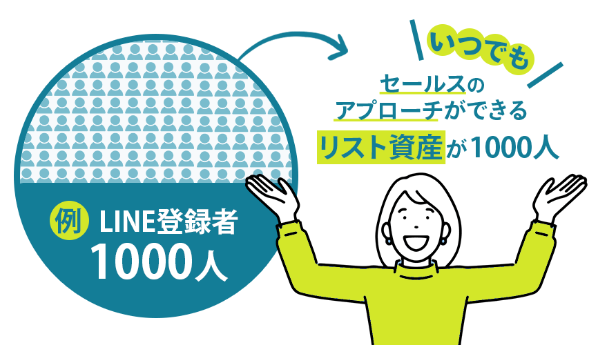 | LINE内で見込み客をリスト化することでいつでもセールスできる体制を構築 |