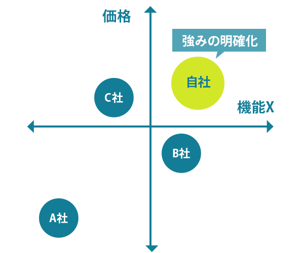 競合に対するあなたの会社の強み(USP)を明確にするための視覚化します。